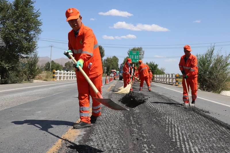 近期,G312线过往大型旅游客车及重载货车激增,加之持续高温天气,导致山丹公路段管着的G312线纵坡及曲线路段路面出现拥包、车辙等病害,造成路面高低不平,影响过往车辆的安全通行。