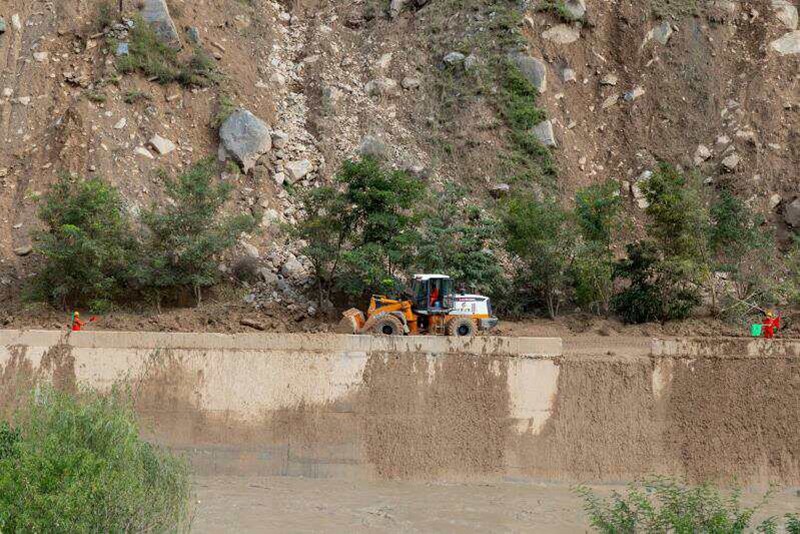 清淤泥、排积水、责任路段巡查、帮助公路沿线受灾群众开展自救……这些在河西看起来很平常的工作,到了山大沟深、沟壑纵横的陇东南地区,则伴随着很大的危险。局应急抢险队保通保畅责任路段一面紧靠山体、一面紧邻白龙江,还不时有碎石落下,存在着极大的安全风险,加之国道212线的抢通,过往的抢险救灾、物资运输车辆日益增多,给队员们的安全和抢险保通工作推进带来了极大的挑战。作业现场必须放置安全标识牌,临江作业要穿救生衣,到达现场必须佩带安全帽,安排专人负责观察山体、指挥交通,为每台机械配备安全员和对讲机……应对措施一条一条的制定出来并严格执行,队员们的人身安全得到有效保障,抢险保畅工作也有条不紊的进行着。