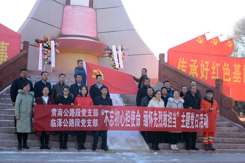 12月11日,肃南公路段党支部联合临泽段党支部开展了“不忘初心担使命、缅怀先烈敢担当”主题党日活动。全体党员参观红石窝会议纪念馆,深入了解革命先辈投身革命、奋勇战斗、不畏牺牲的英雄事迹,接受了党性和革命传统再教育。在红西路军纪念碑前,全体党员重温了入党誓词,进一步回溯精神的根脉,感受涌动的初心,激发前行的动力,以此表达对党忠诚、为党的事业奋斗终生的决心和愿望。大家一致表示,要把此次主题党日活动与学习习近平新时代中国特色社会主义思想结合起来,以革命先烈为榜样,焕发斗志,发扬优良的革命传统,以更加坚强的党性,更加务实的作风,更加强烈的使命感和责任感,践行党的宗旨,开拓进取,积极发挥党员先锋模范作用,为公路事业发展贡献力量。