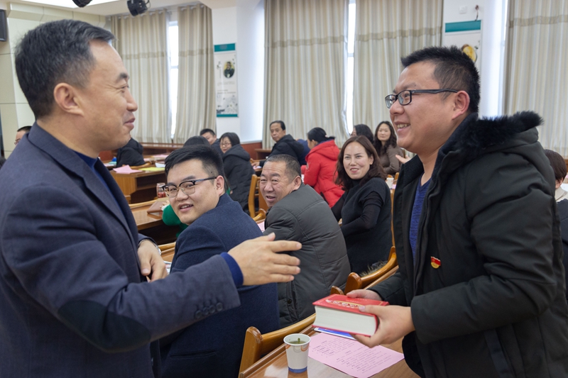 在“讲故事”环节,全省公路系统“十佳”养路工——甘州公路段大满养管站副站长任斌武,讲述了自己立足岗位、敬业奉献的感人故事。“学模范”环节,甘肃省“劳动模范”“道德模范”张学龙,分享了他艰苦奋斗、拼搏进取的心路历程,与会人员潸然泪下。“送祝福”环节,局领导书写新年寄语,为在座干部职工送上了寄托着满满祝福的贺卡和小礼物。
