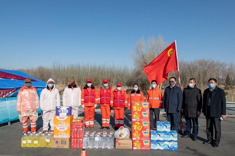 2月8日,共青团张掖市委书记安军同志来到G30连霍高速公路张掖收费站检疫点,走访慰问了坚守在疫情防控一线、执行车辆信息录入登记任务的张掖公路局高养中心青年职工,为他们送来了医用酒精、84消毒液等疫情防控物资和方便面、牛奶等生活物资。