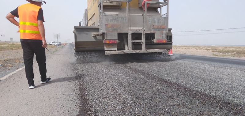 该项目分别在G312线K2798+980-K2800+500、K2805+800-K2809+900、K2817+820-K2820+200及G213线K547+034-K554+700四个路段实施,共计15.67公里,总面积12.5万平方米。为确保工程质量,该段严控三关不放松。一是严控材料源头关。针对工程所用乳化沥青及碎石等材料,在规定检验动作的基础上,进行随机抽检,从源头上保证原材料质量。二是严控施工工艺关。要求施工单位严格按照标准流程施工,在成型碾压及开放交通阶段严格依照试验路段数据,保障沥青破乳时间以保证最终的粘结度。三是严控现场安全关。施工前及时向施工单位进行详细的安全技术交底,施工中经常性开展安全检查,确保施工安全。
