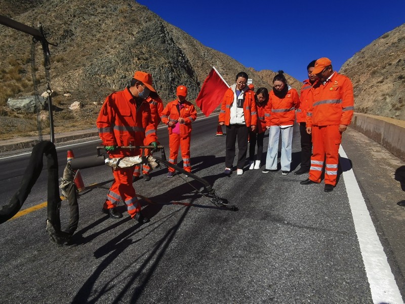 肃南公路段把岗前教育培训“搬”进了S313线的路面灌缝现场,一线养护职工“客串”讲师进行现场讲解,主要介绍灌缝作业的流程、现场安全区的布设以及公路养护的主业主责,让新入职员工直观的感受养护作业现场,在养护一线感受和认识“公路美容师”这份职业。