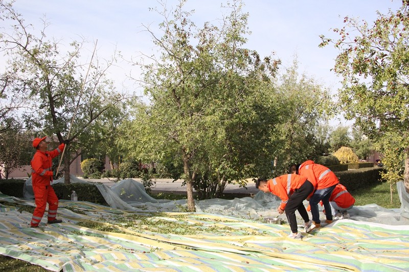 临泽县盛产小枣,每年秋末的集中打枣成为该段最热闹的事,职工们挥着长杆使劲朝着枣树敲打,成熟的鲜枣噼里啪啦掉落一地,负责筛捡的同志们也“暗自较劲”,争先恐后开始捡枣比赛,院内一片喜悦丰收的景象。