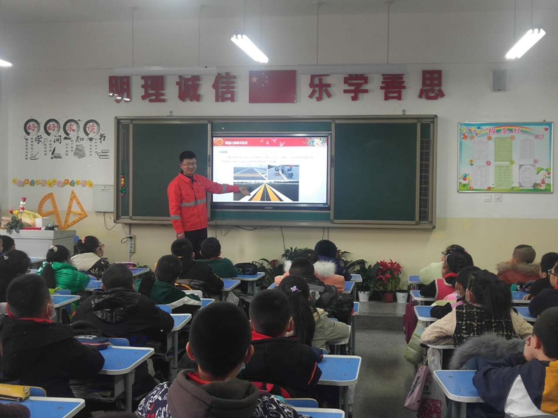 宣传现场,该中心安全人员从日常高速公路安全行驶小知识入手,通过PPT讲解交通事故、视频播放、互动问答等方式向同学们介绍了高速公路的来源、高速公路的组成部分、事故发生的原因以及应对措施等安全常识,孩子们整齐端坐,认真听课。在互动过程中,同学们踊跃参与,争先分享自己对高速公路的认知,积极参与问答,现场气氛热烈。随后,还为孩子们发放了新年祝福小礼品和《大手牵小手 齐步文明走》交通安全一封信。