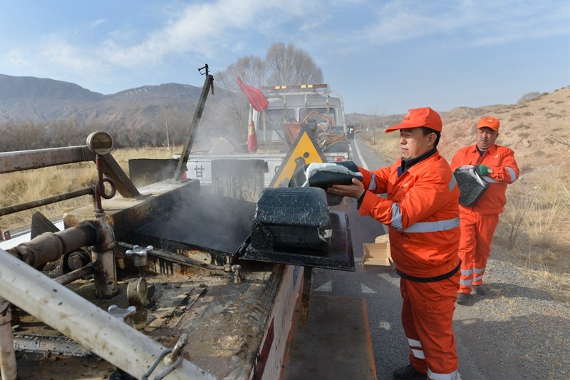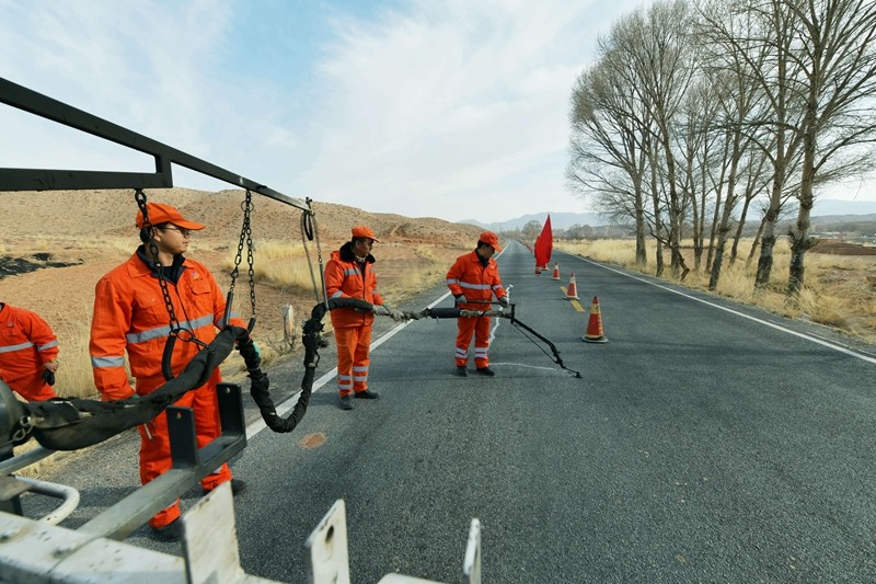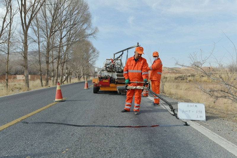 近日,山丹公路段抢抓气温回暖的有利时机,在G307线迅速开展春季路面灌缝工作。