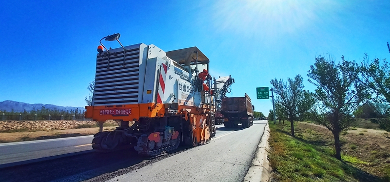 山丹公路段开展预防性养护施工路面精铣刨工作